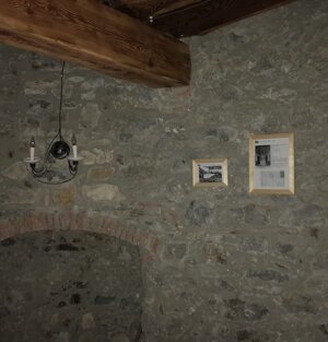 La luce naturale gioca un ruolo fondamentale: filtrando dalle piccole finestre e dalla porta d’ingresso, crea un delicato contrasto tra zone illuminate e penombre, mettendo in risalto la texture delle pareti e la matericità degli elementi. Questo dialogo tra luce e ombra contribuisce a rendere la cripta uno spazio vivo, capace di cambiare volto nel corso della giornata.